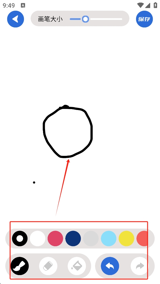 3、在画板界面,选择你喜欢的颜色和画笔大小,然后在画板上进行创作。完成后,点击“保存”按钮保存你的作品。
