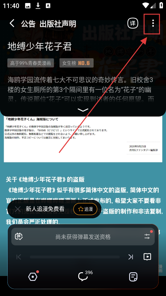 2、进入漫画页后,点右上角【...】按钮就能展开更多操作选项啦,快去试试哟。