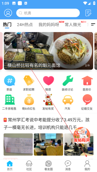 1、打开常州化龙巷论坛,点击【我的】。