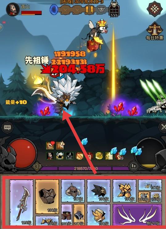 1、战斗中注意查看下方【装备栏】,及时更换强力装备提升战力。