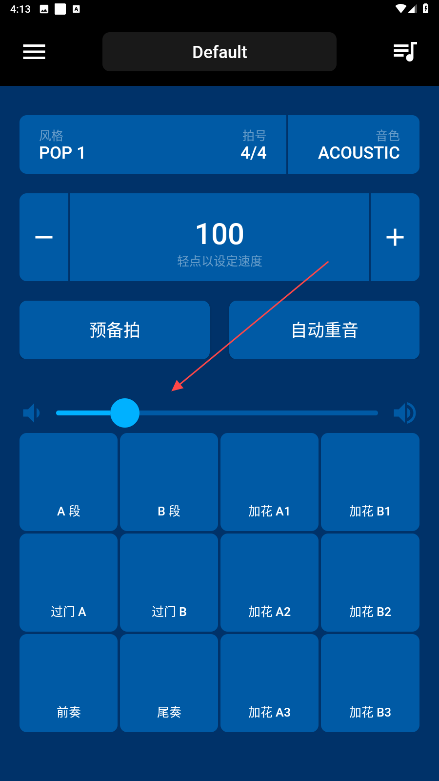 4、精准速度调节:提供速度转盘与打拍定速功能,可快速调整BPM,确保伴奏与演奏节奏完美契合。