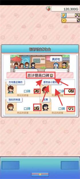 3、参与“销售战略会”,选择不同选项(如“方向是正确的”“感觉会小受欢迎”等)提升口碑,关注【总计提高口碑】数值变化。