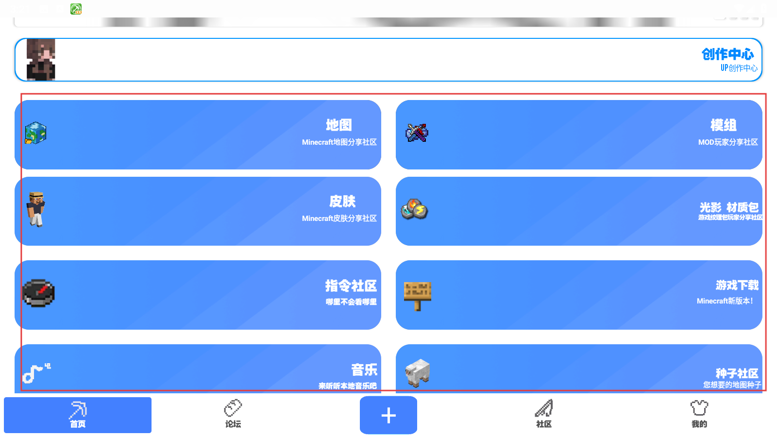 1、在首页可点击【地图】【模组】等板块,进入相应《Minecraft》资源分享社区。