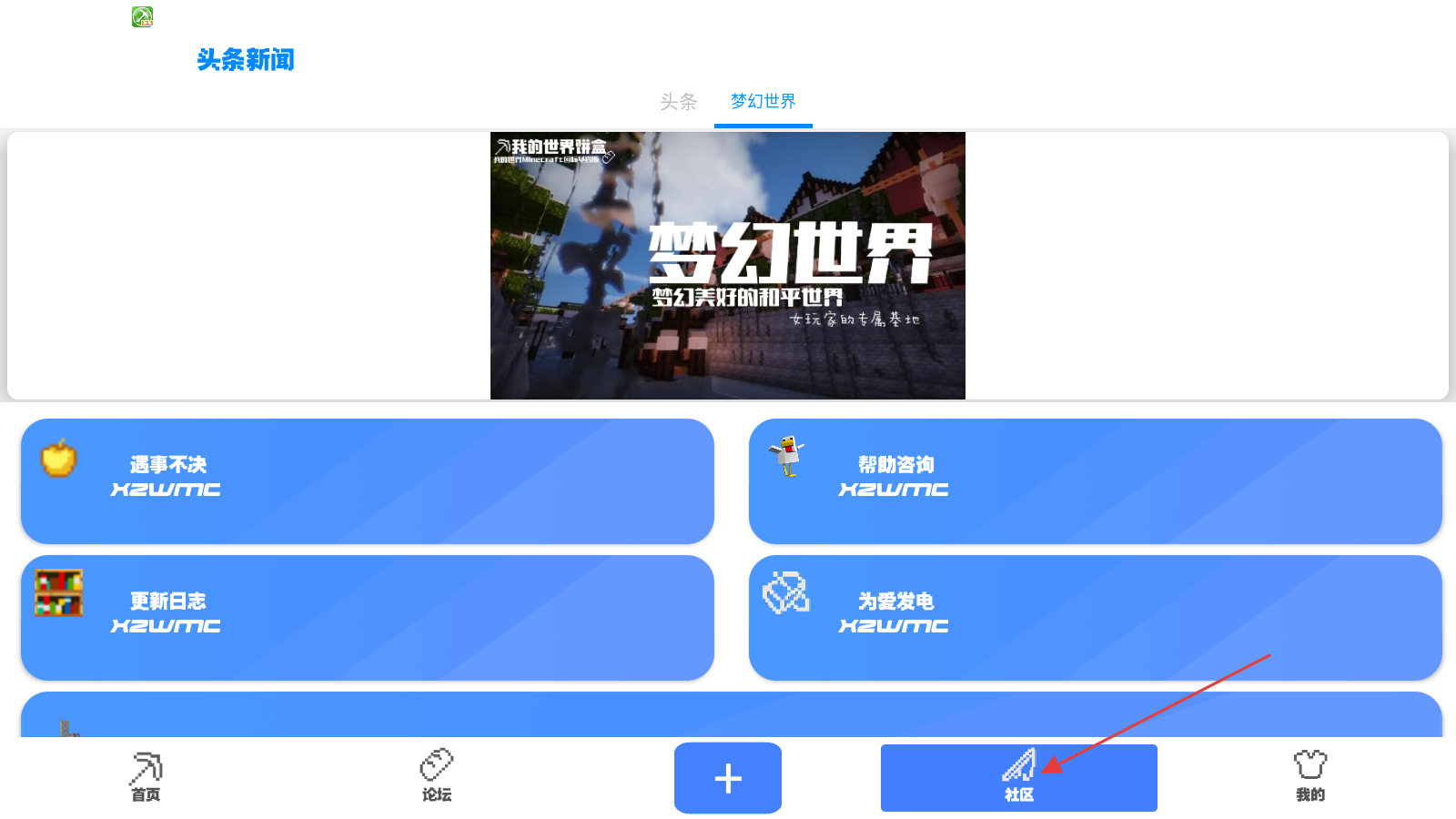 3、点击底部【社区】,可查看【头条新闻】等相关资讯及功能板块。