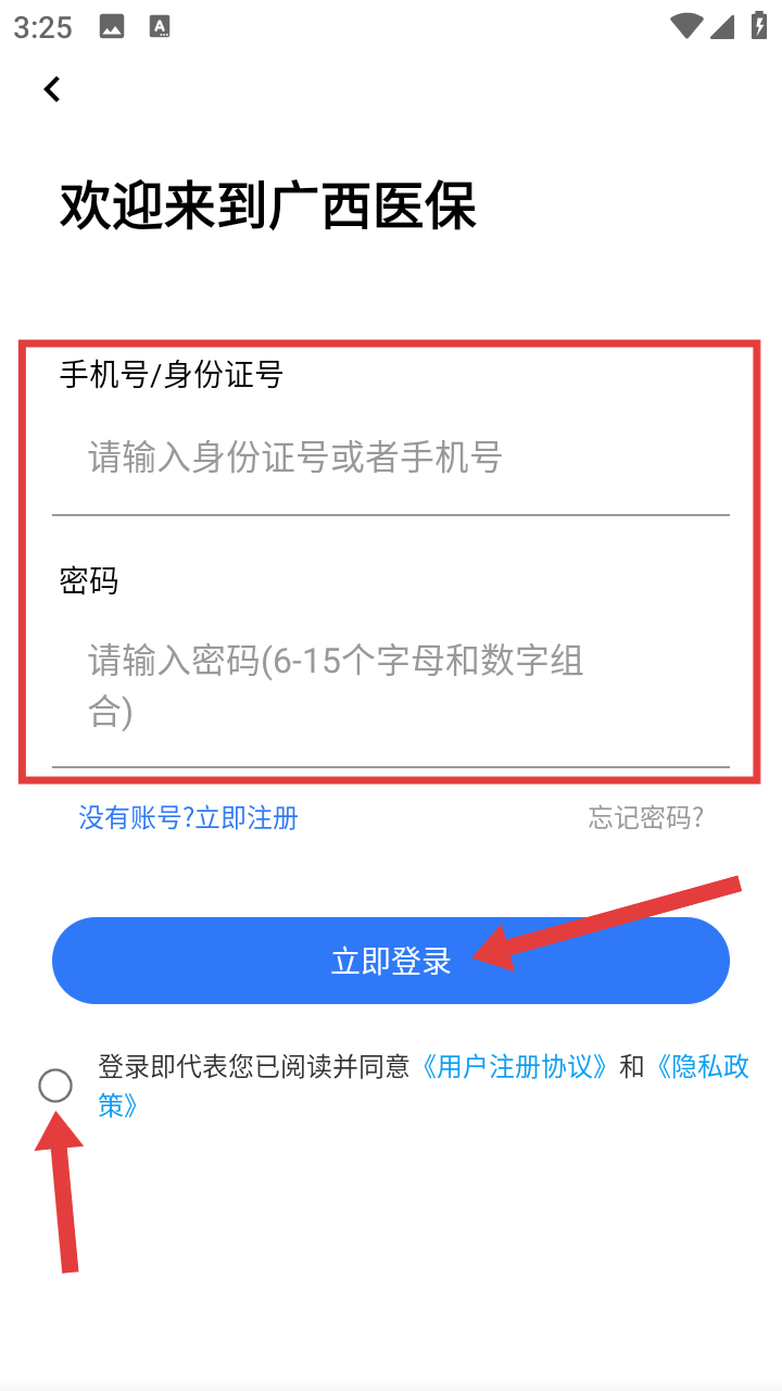 3、最后,用户在方框内输入手机号和密码后,点击勾选方框后再点击【立即登录】即可。