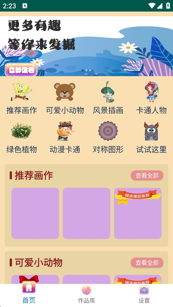 1、挑选心仪模板:进入游戏后,在海量模板库中浏览,找到自己喜欢的图案,点击进入填色界面。