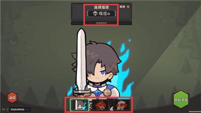 1、进入游戏后,在角色界面上方【选择难度】(如难度0),不断突破关卡解锁更多强力角色。