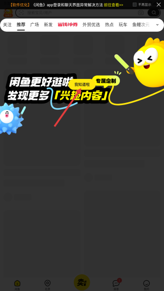 2、进入闲鱼主页,能看到各种分类入口和推荐商品,可根据需求浏览或搜索想要的商品哦。