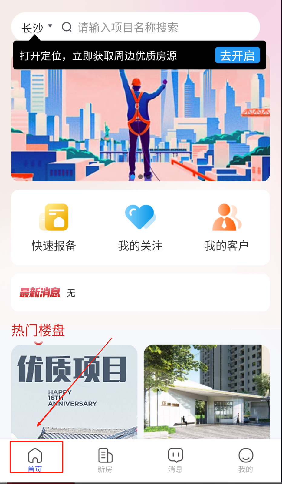 1、登录后查看首页推送的优质房源信息,通过区域筛选快速定位目标楼盘。输入关键词检索可获取精准房源数据,支持收藏重点关注项目。