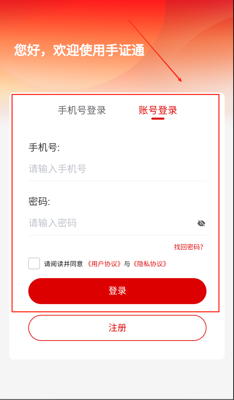 3、登录时选账号登录更方便,填完号码和密码后别忘了勾选协议框,那个勾选框在登录按钮上方容易漏掉哦。