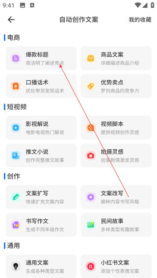 1、打开抖素材,点击【自动创作文案】。
