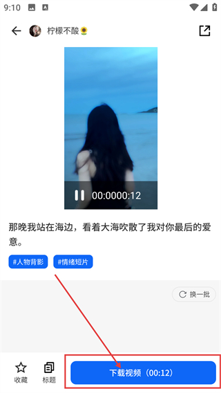 3、在素材详情页,点【下载视频(00:12)】按钮,可触发视频下载流程,获取该素材资源呢。