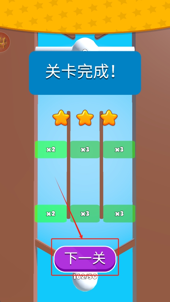 3、完成关卡:成功完成关卡后,点击“下一关”按钮继续游戏。