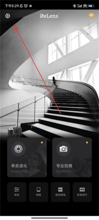 1、打开relens大光圈虚化单反相机,点击【设置】。