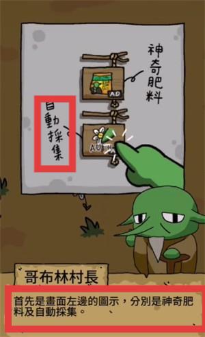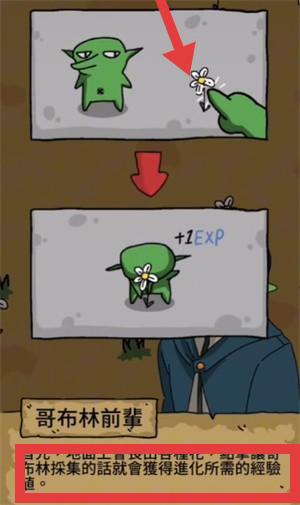 1、在游戏中操控哥布林进行【採集】,採集物品可让哥布林获得【+2EXP】,积累进化所需经验值。