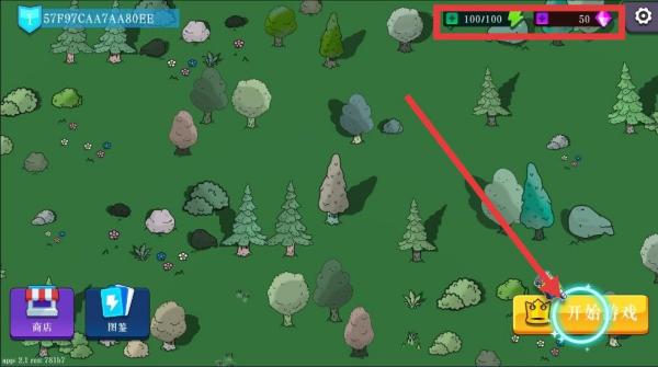 1、关注游戏界面上方资源数值,如【100/100】和【50】,合理规划资源后点击【开始游戏】进入游戏环节。