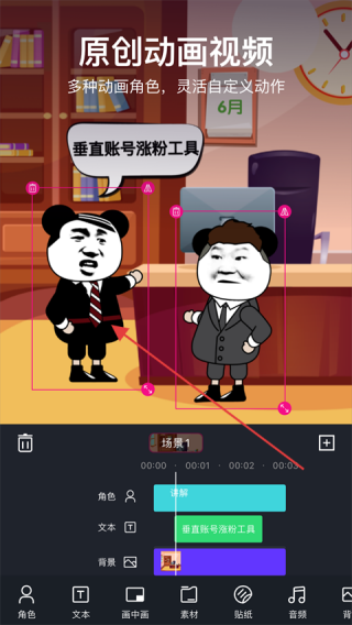 1、打开美册视频制作,点击【人物】。