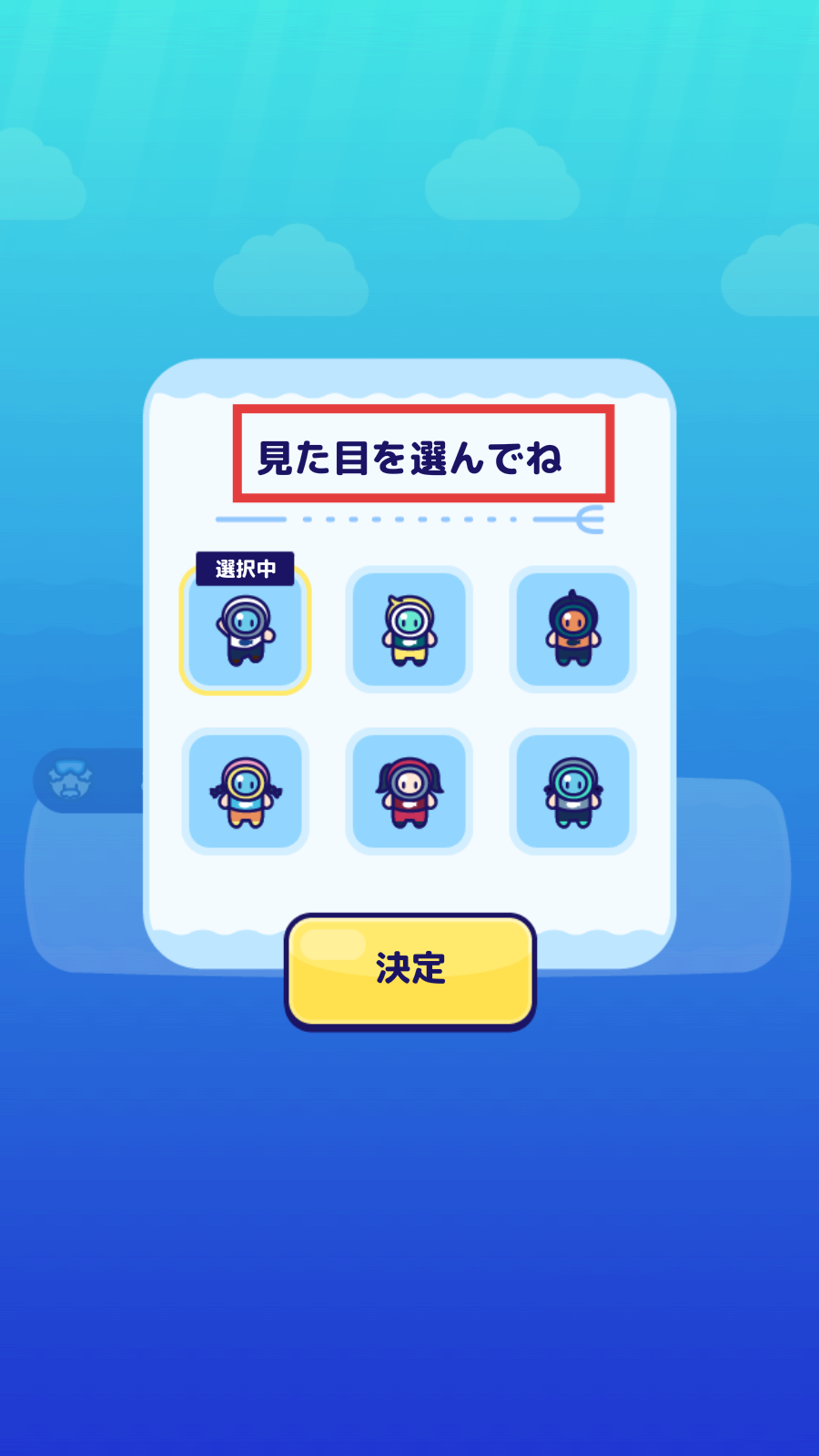 2、遇到「見た目を選んでね」提示时,从展示角色中挑选心仪外观,点击【決定】确认,确定游戏角色形象。
