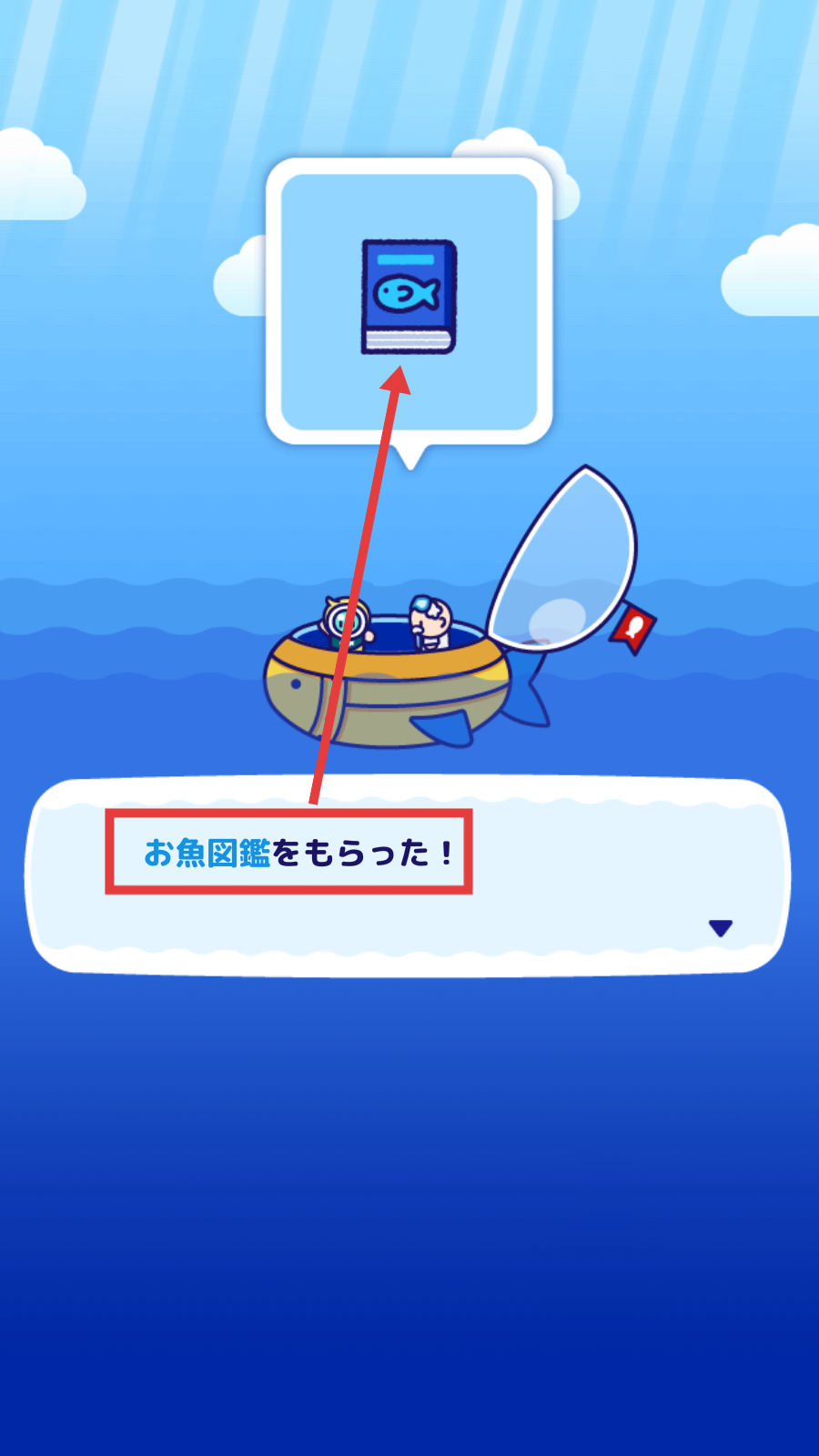 3、游戏中获得提示「お魚図鑑をもらった!」时,注意查收并利用好鱼类图鉴道具,可能用于后续游戏任务或探索。