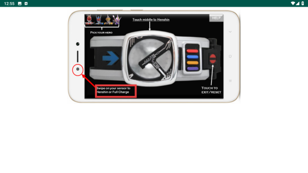 3、在传感器位置滑动,完成变身或能量充满操作,若需退出或重置,点击右侧黑色部件上的红色区域。