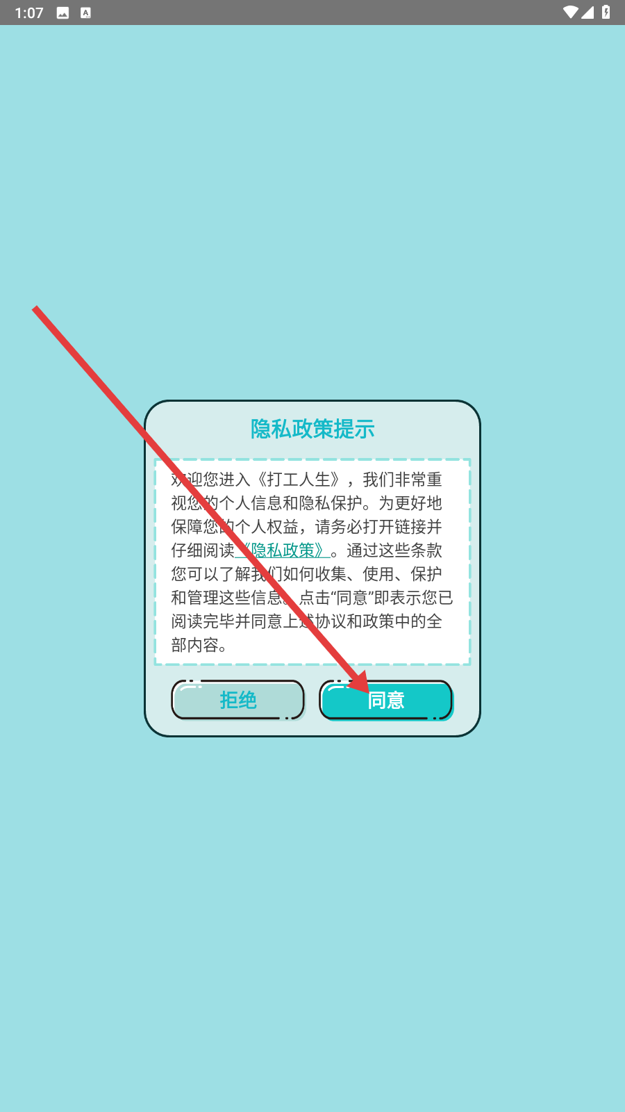1、进入游戏,点击【同意】。