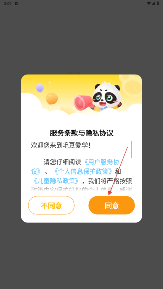 1、点击【同意】按钮接受服务条款与隐私协议。