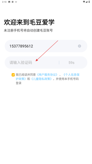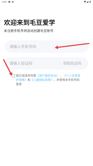 2、在输入框中填写【手机号码】并勾选已阅读协议的选项。
