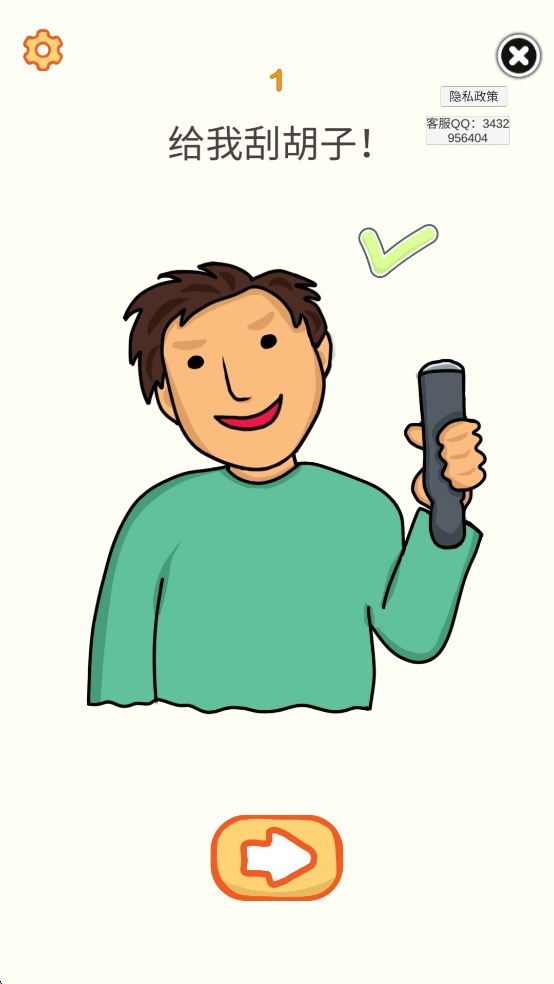 3、完成操作:成功刮掉胡子后,点击屏幕上的勾选标记确认完成操作。