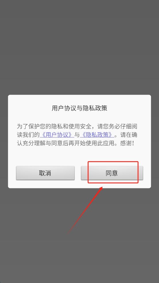 1、同意协议:在游戏启动界面,阅读用户协议与隐私政策后,点击“同意”按钮。