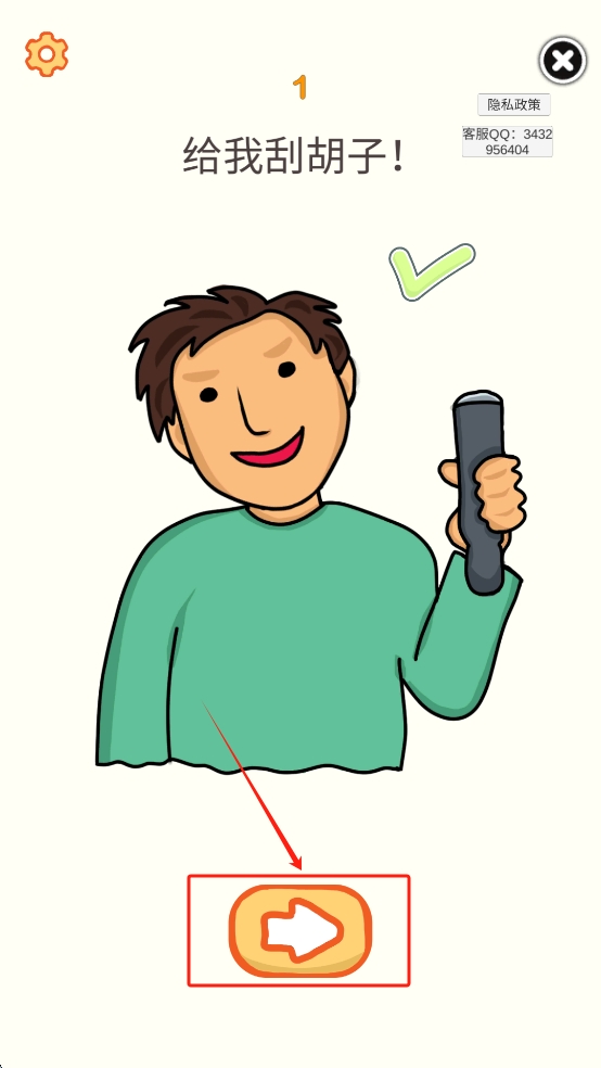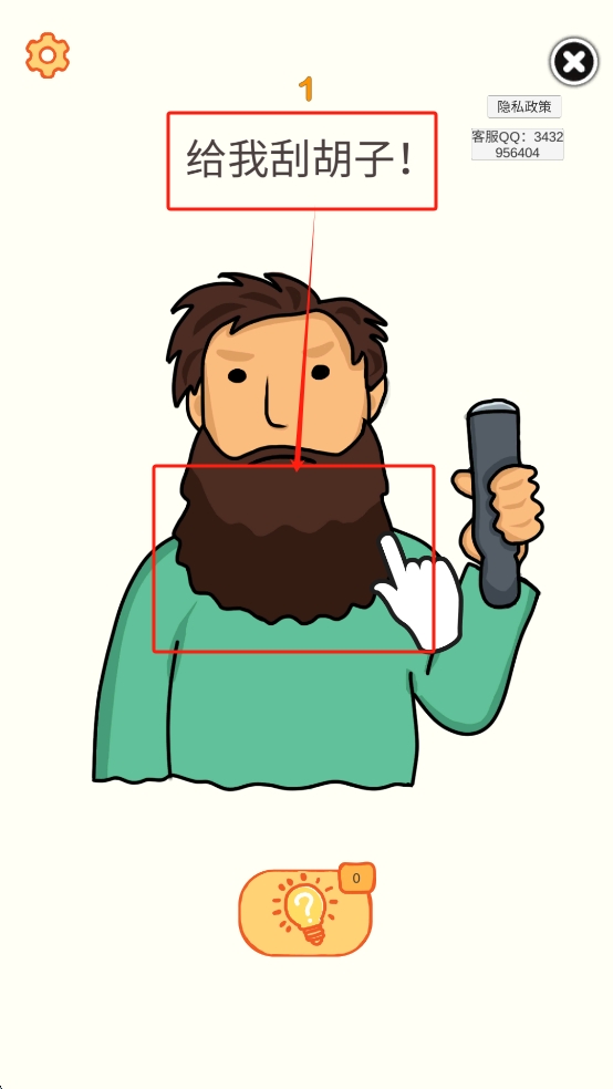2、开始游戏:在游戏关卡界面,按照指示点击角色的胡子开始游戏。
