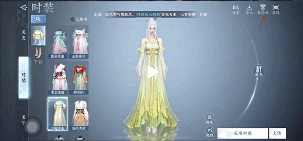 3、在【时装】界面,选择已拥有时装,点击【应用时装】即可更换,还可点击【上传】分享。