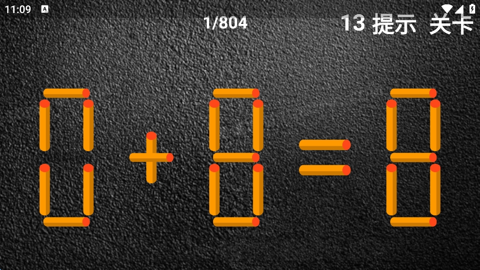 1、经典解谜模式:观察等式结构,移动一根火柴使等式成立。可能需要改变运算符号或数字形态。