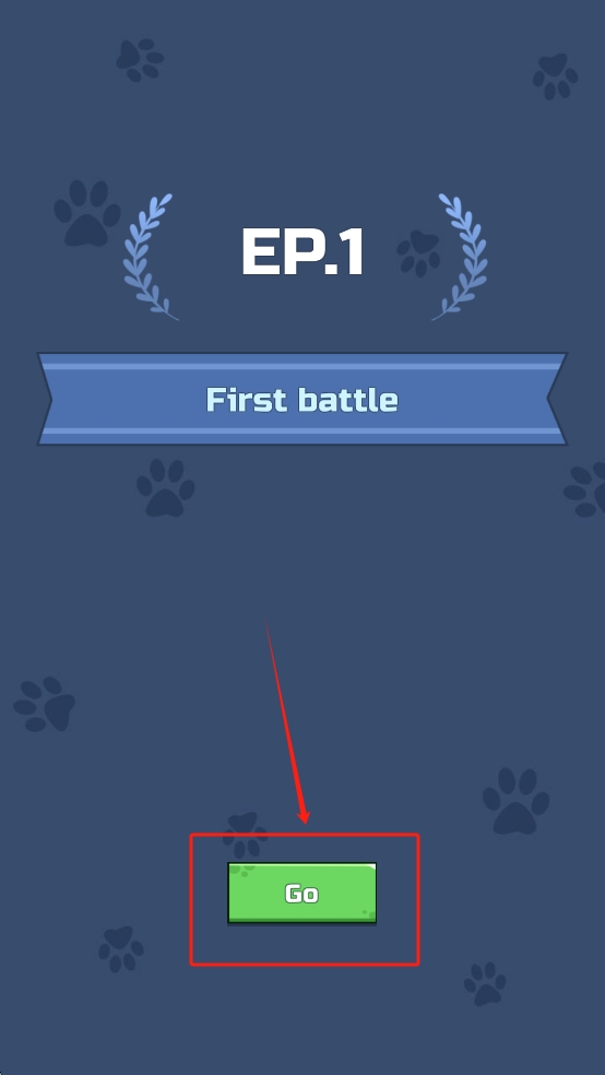 2、进入关卡:选择关卡“EP.1 First battle”,点击“Go”按钮开始战斗。
