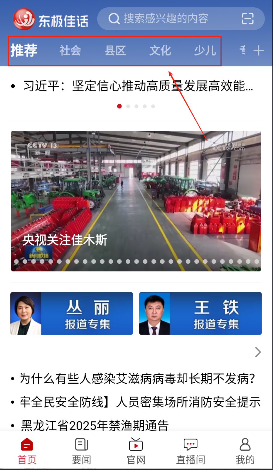 1、点击首页顶部导航栏切换要闻、县区、文化等六大频道,可浏览实时更新的图文资讯内容。