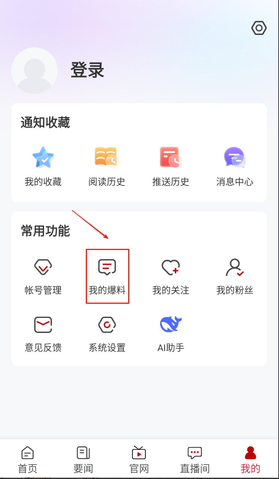 3、在个人中心点击"我要爆料"按钮,上传文字描述与现场图片素材完成线索提交流程。