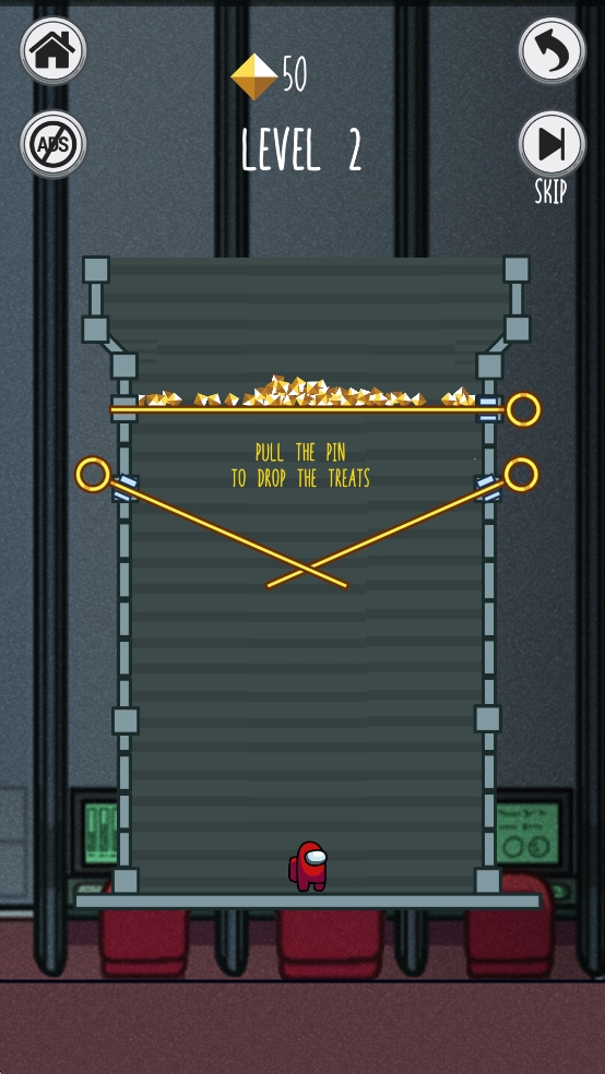 1、基础操作逻辑:进入关卡后,观察场景中人物、怪物、陷阱的位置分布,点击屏幕拉动别针。