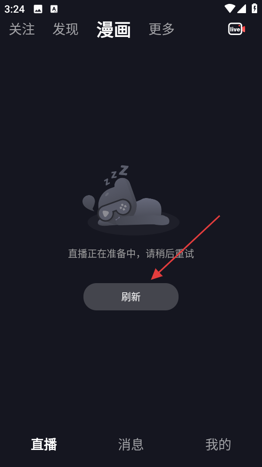 3、若直播未开始,显示“直播正在准备中”,可点击【刷新】按钮尝试获取直播内容。