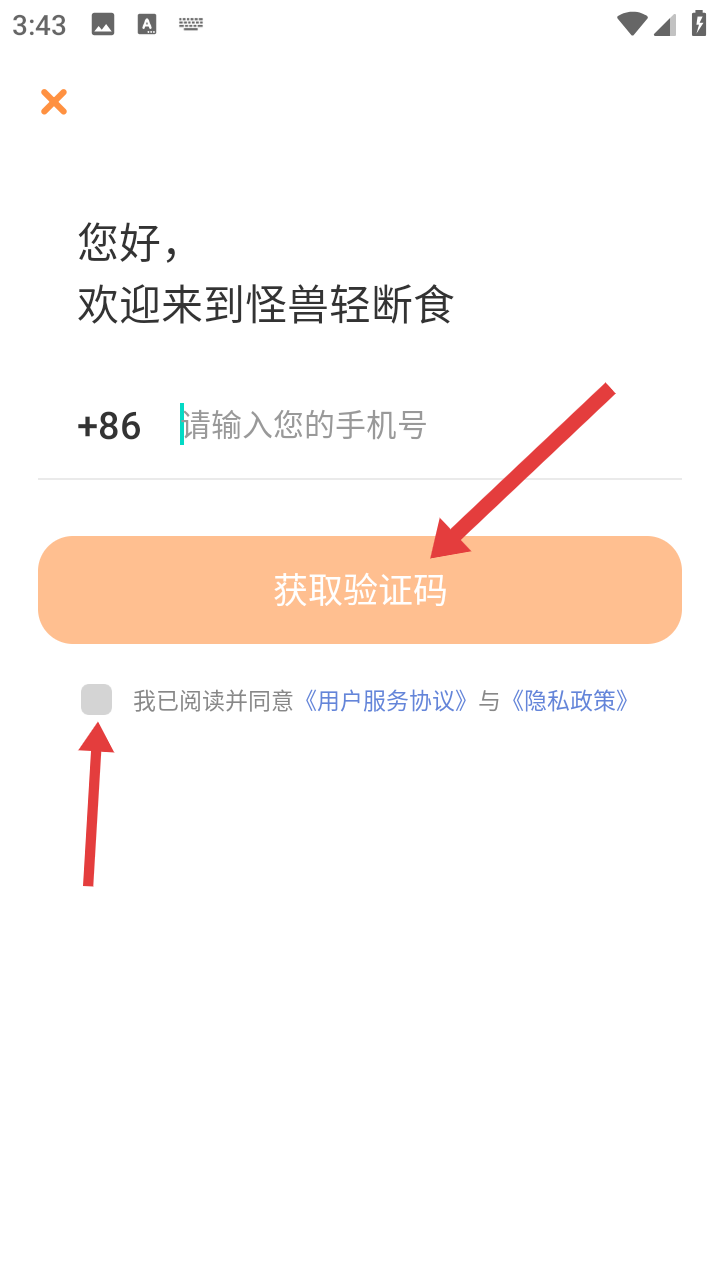 3、最后,用户点击勾选【已阅读并同意】后再点击【获取验证码】即可。