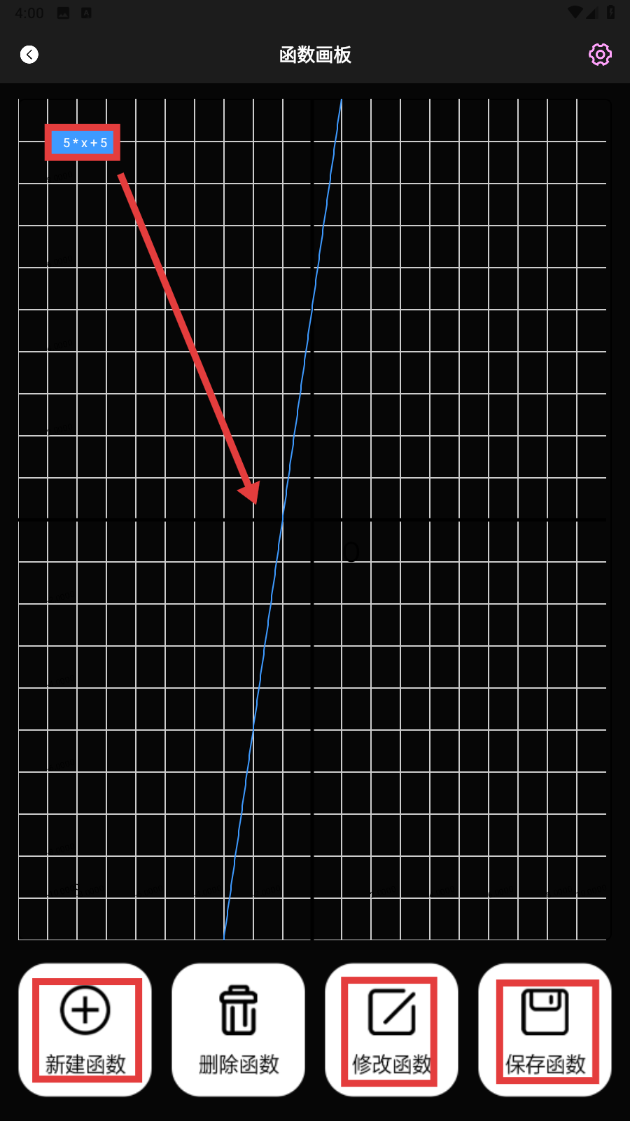 3、生成函数图像后,可在【函数画板】界面进行操作,如点击添加新函数,调整现有函数,保存当前函数设置。