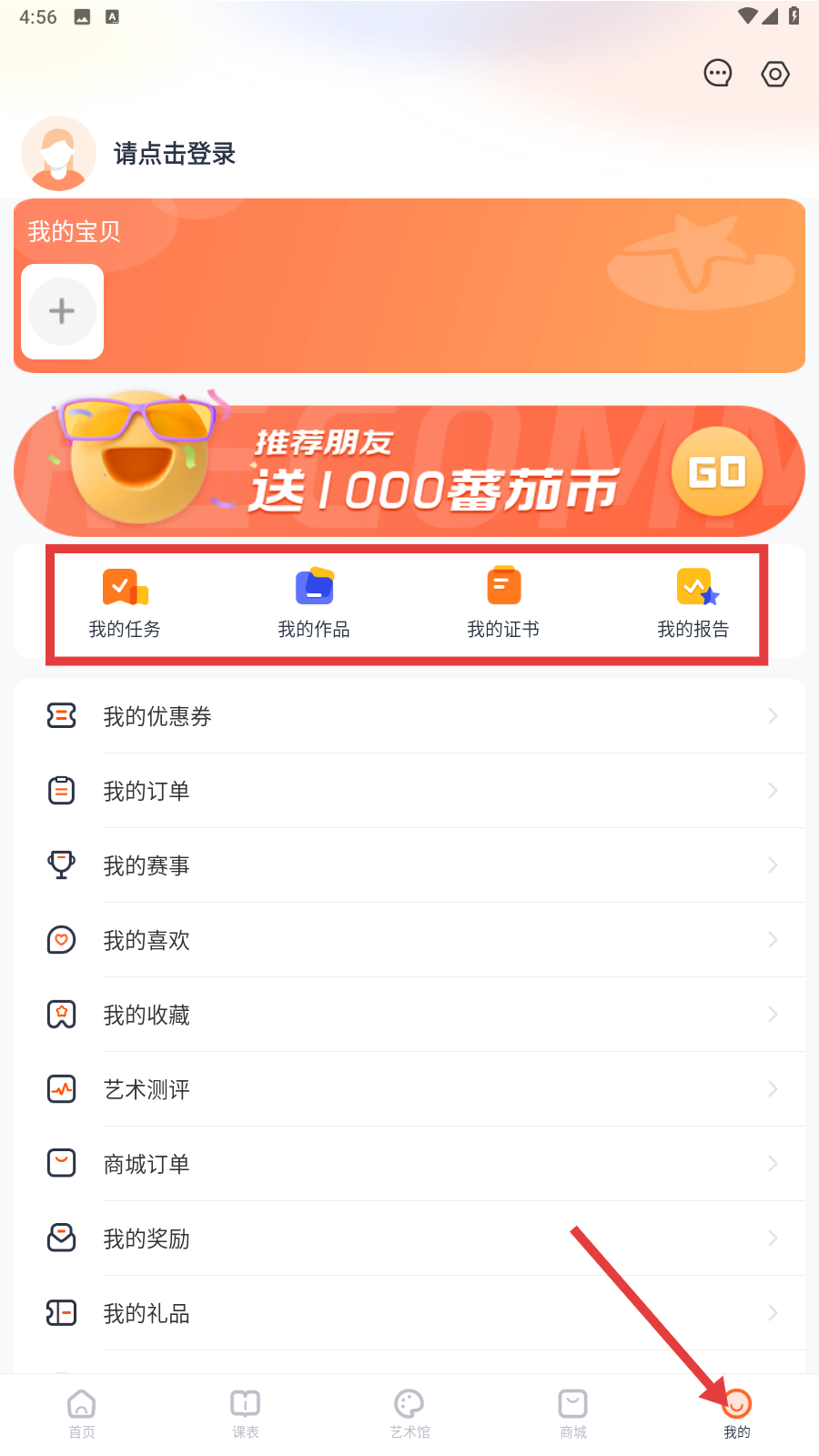 3、点击【我的】进入个人中心,登录后可查看【我的任务】【我的作品】【我的证书】【我的报告】等,管理个人学习相关信息。