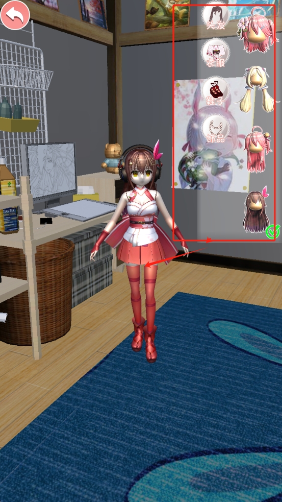 1、基础搭配流程:进入 “换装间” 后,从上衣、下装、鞋履、饰品等分类中挑选单品,点击即可穿戴。