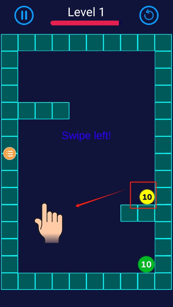 3、操作游戏:在游戏关卡中,按照提示“Swipe left!”向左滑动屏幕,以移动迷宫中的方块。