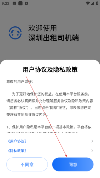 1、打开深圳出租,点击【同意】。