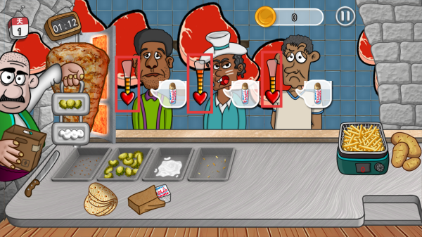 2、同时应对多位顾客时,观察顾客需求标识(爱心、温度计等),按顺序依次准备相应食材,保证在规定时间内满足顾客需求。