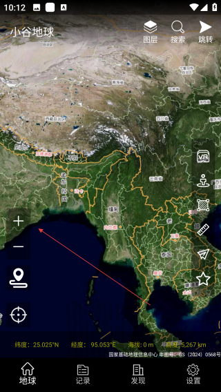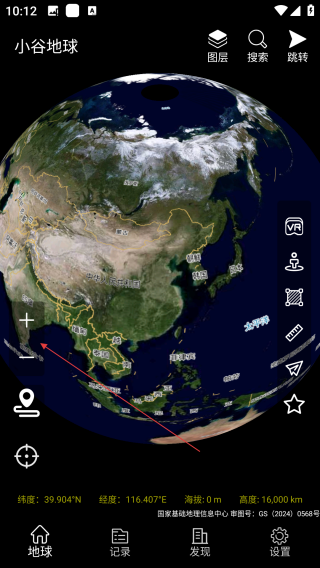 1、打开小谷地球卫星地图,点击【+】。