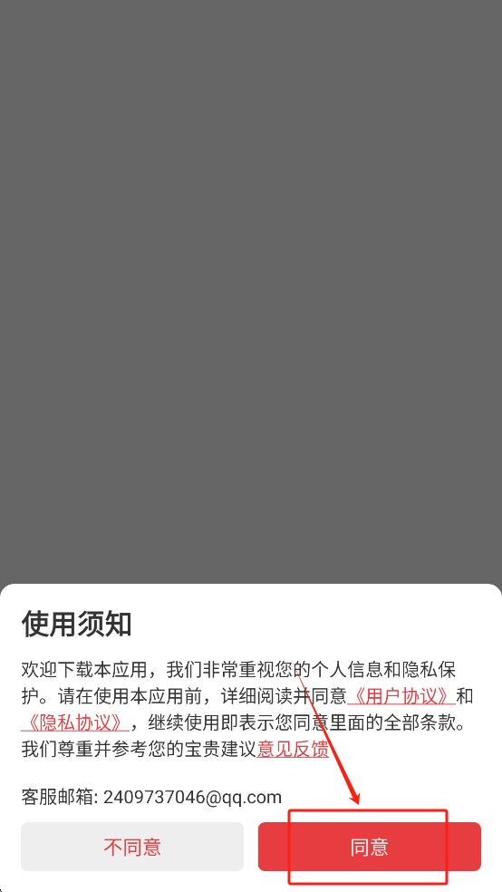 1、同意使用须知:在游戏启动界面,点击“同意”按钮以接受使用须知,继续游戏。