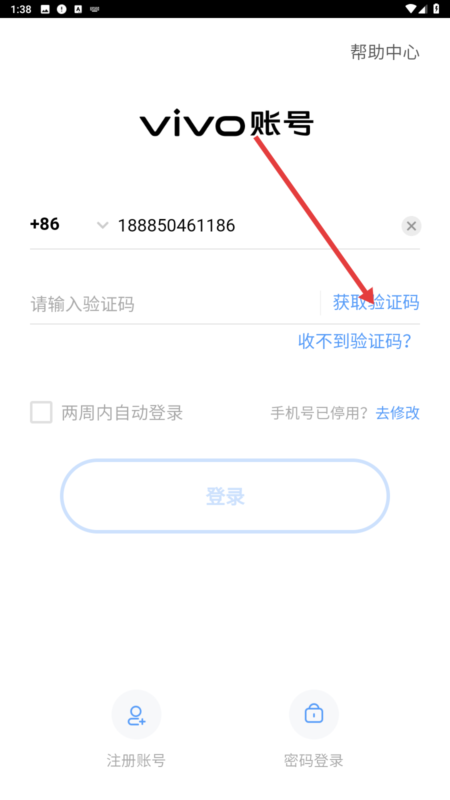 2、点击【获取验证码】。