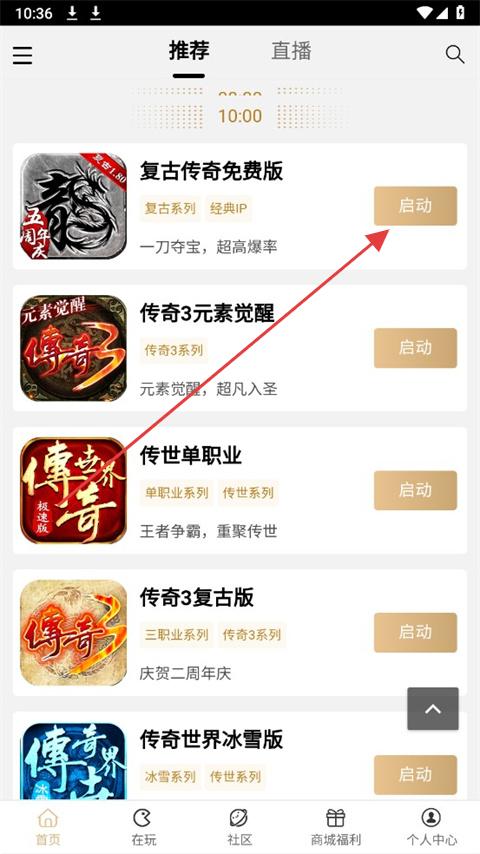 2、在推荐页面,点击游戏旁的【启动】按钮开启游戏。