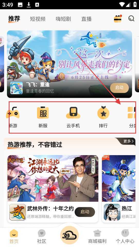 1、在应用首页,有【新游】【新服】等功能入口,还有热游推荐,能快速找到想玩的游戏呢。