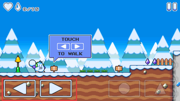 1、按照提示【TOUCHTOWALK】,点击屏幕下方的左右箭头按钮控制角色移动。